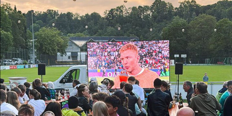 „Es war geil!“, brachte es Stüberl-Wirtin Barbara Neumaier kurz und knapp auf den Punkt. Um die Bildqualität noch weiter zu erhöhen, hat Chef-Techniker Adrian Zeislmeier die fahrbare Leinwand aufgebockt und ermöglicht somit, dass noch mehr Zuschauer das Spiel optimal schauen können.